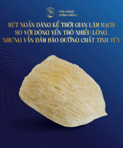 - Yến tổ thô sạch được chọn lọc từ các tổ to và dầy, ít lông, nên các tổ yến làm sạch chỉ trải qua khâu hút chân không rút các sợi lông dính trên tổ yến, hình dạng của tổ yến được đảm bảo nguyên vẹn.