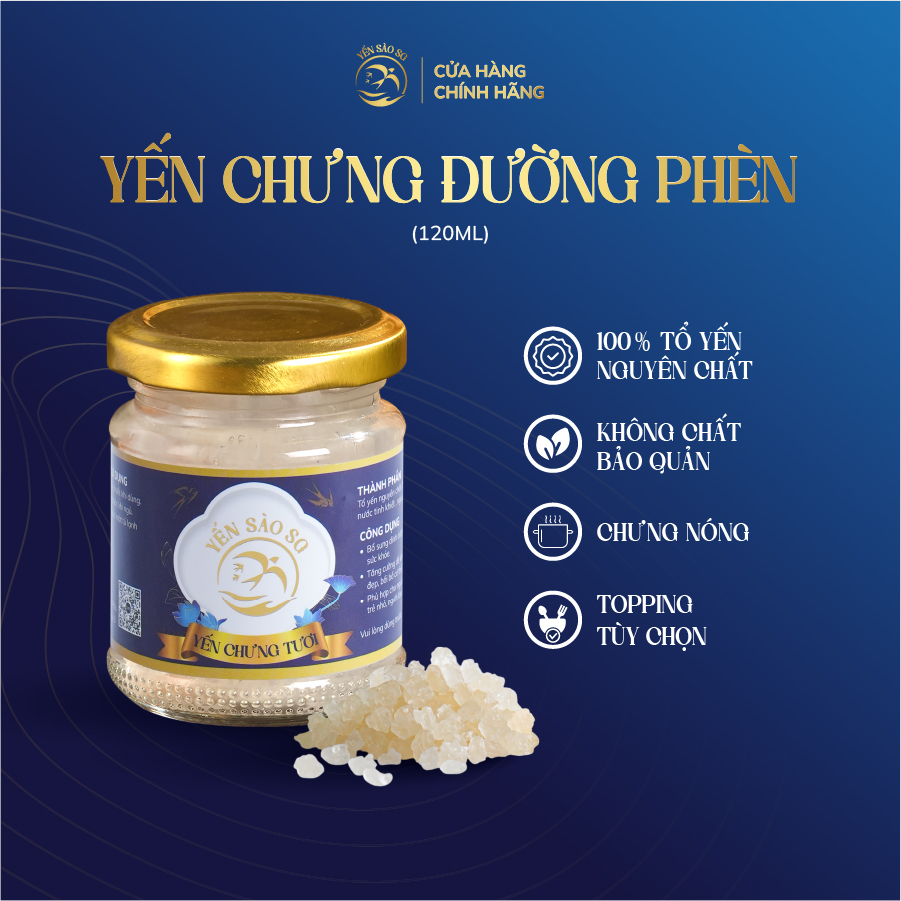 Đường phèn kết tinh tự nhiên từ 100% mật mía ít ngọt, thanh mát quyện lấy sợi yến dai dai giòn giòn đích thị là thức uống giải nhiệt cực tốt vào mùa hè này.