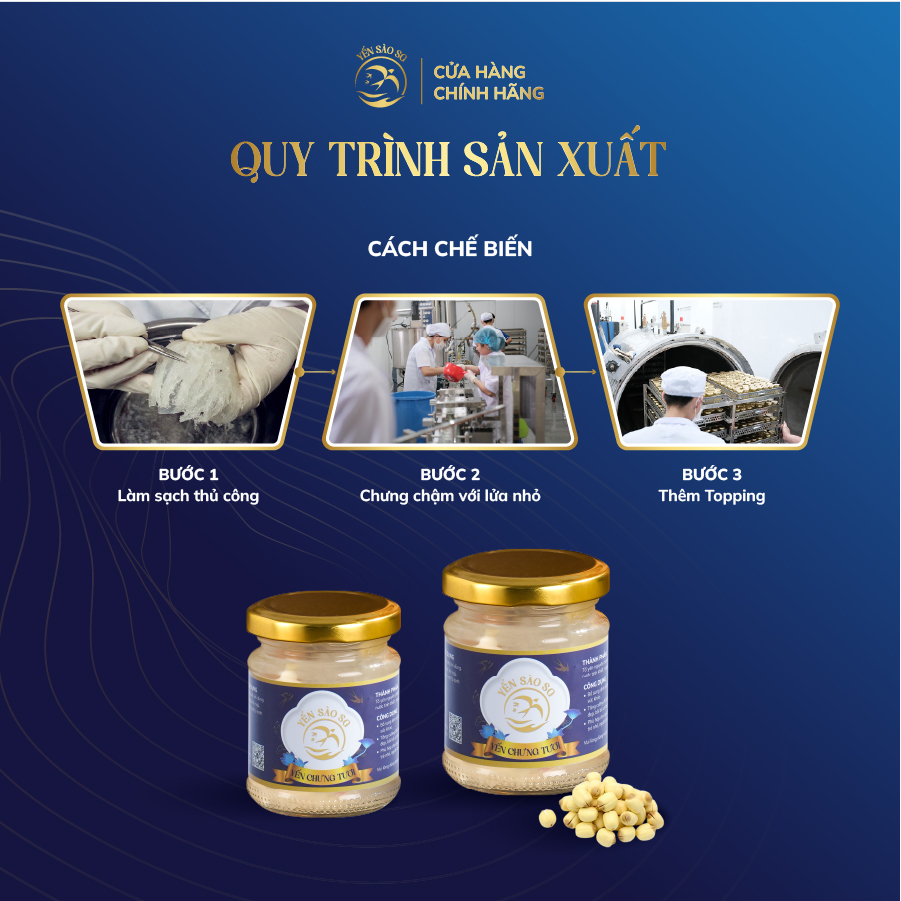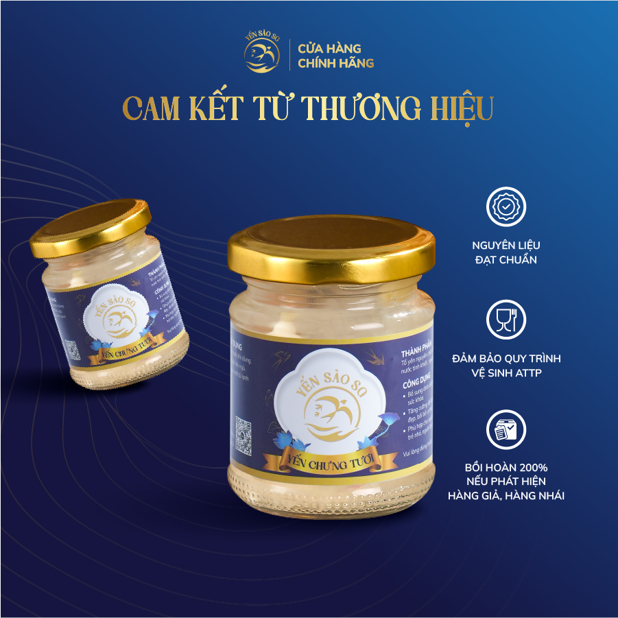 Yến nguyên chất 100 % , không chất phụ gia, không chất tạo mùi, được hấp cách thủy với hạt chia và đường phèn sạch.