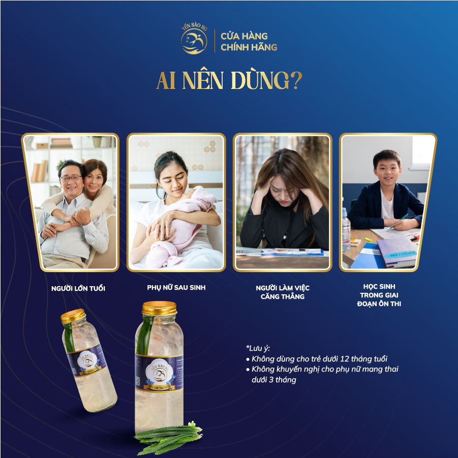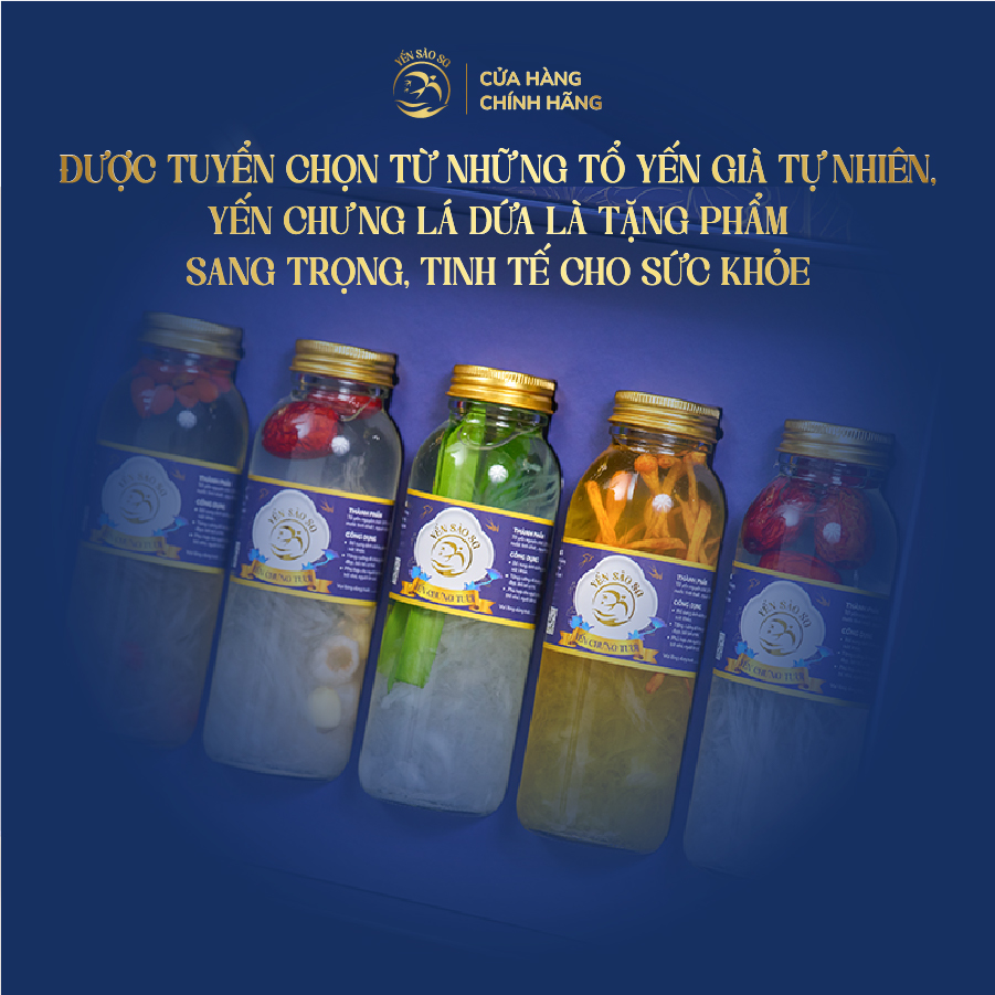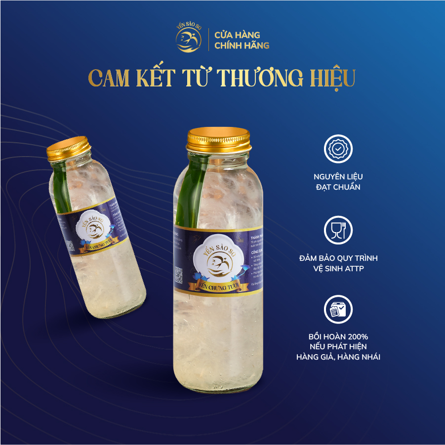 Yến nguyên chất 100 % , không chất phụ gia, không chất tạo mùi, được hấp cách thủy với lá dứa và đường phèn